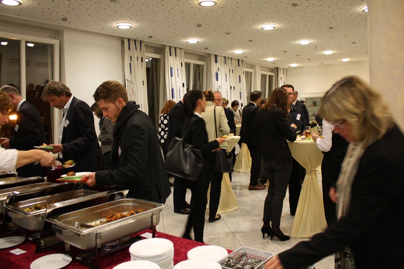 Wer sich vor der schwierigen Situation befindet, unterschiedliche Interessenslagen und eine rechtssichere Vertragsgestaltung zum Thema Vergütungsbausteine unter einen Hut zu bekommen, erhielt wichtige Tipps von Fachanwalt Stefan Klaus von JuS Rechtsanwälte Schloms und Partner. Klaus führte insgesamt neun Flexibilisierungsinstrumente auf, erläuterte diese kurz für die Praxis und machte auf die Stolperstellen aufmerksam. Seinem Aufruf, ihn direkt auf spezielle Konstellationen und Ausgangssituationen anzusprechen, nahmen viele Teilnehmer nach den Vorträgen bei leckerem Finger-Food und Getränken wahr.