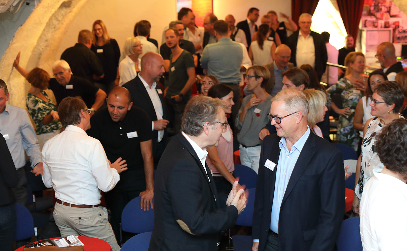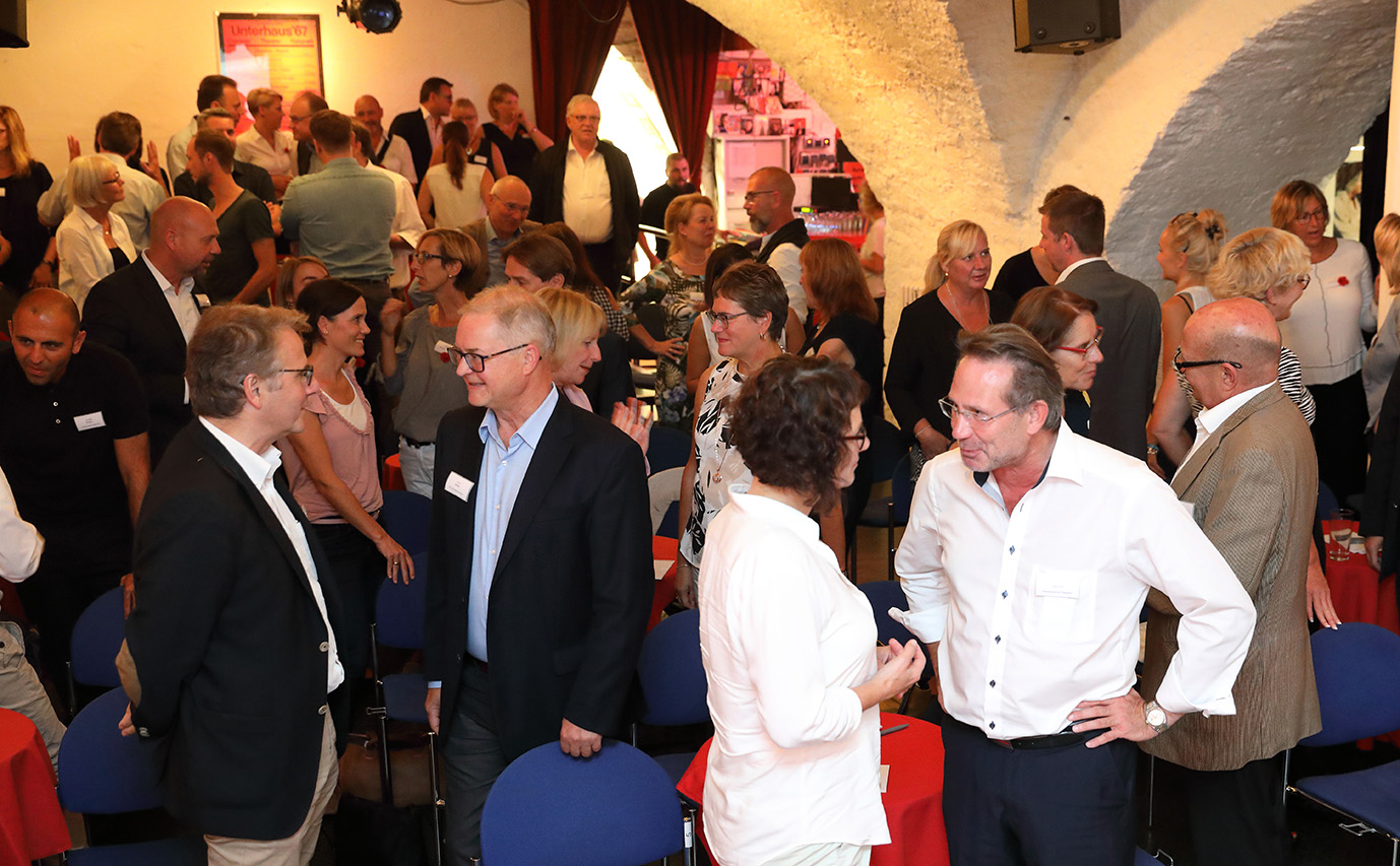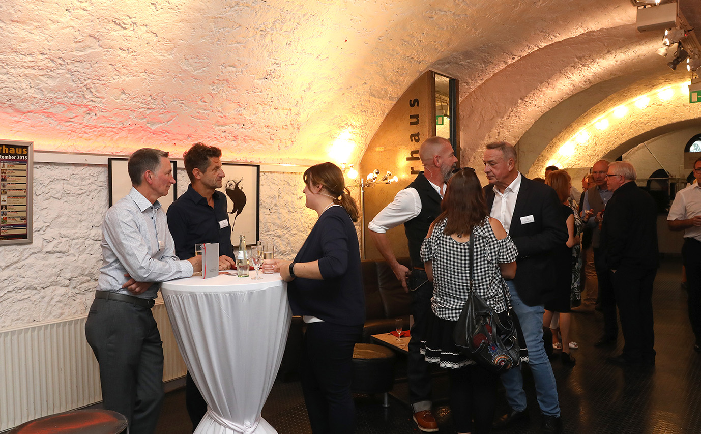 Nach dem Vortragsprogramm und der Verlosung der Tombola Preise von W+S Werbeservice GmbH und Jobware, genossen die Gäste in dem eindrucksvollen Ambiente des "unterhaus" Speis und Trank und nutzten die Möglichkeit zum Netzwerken.